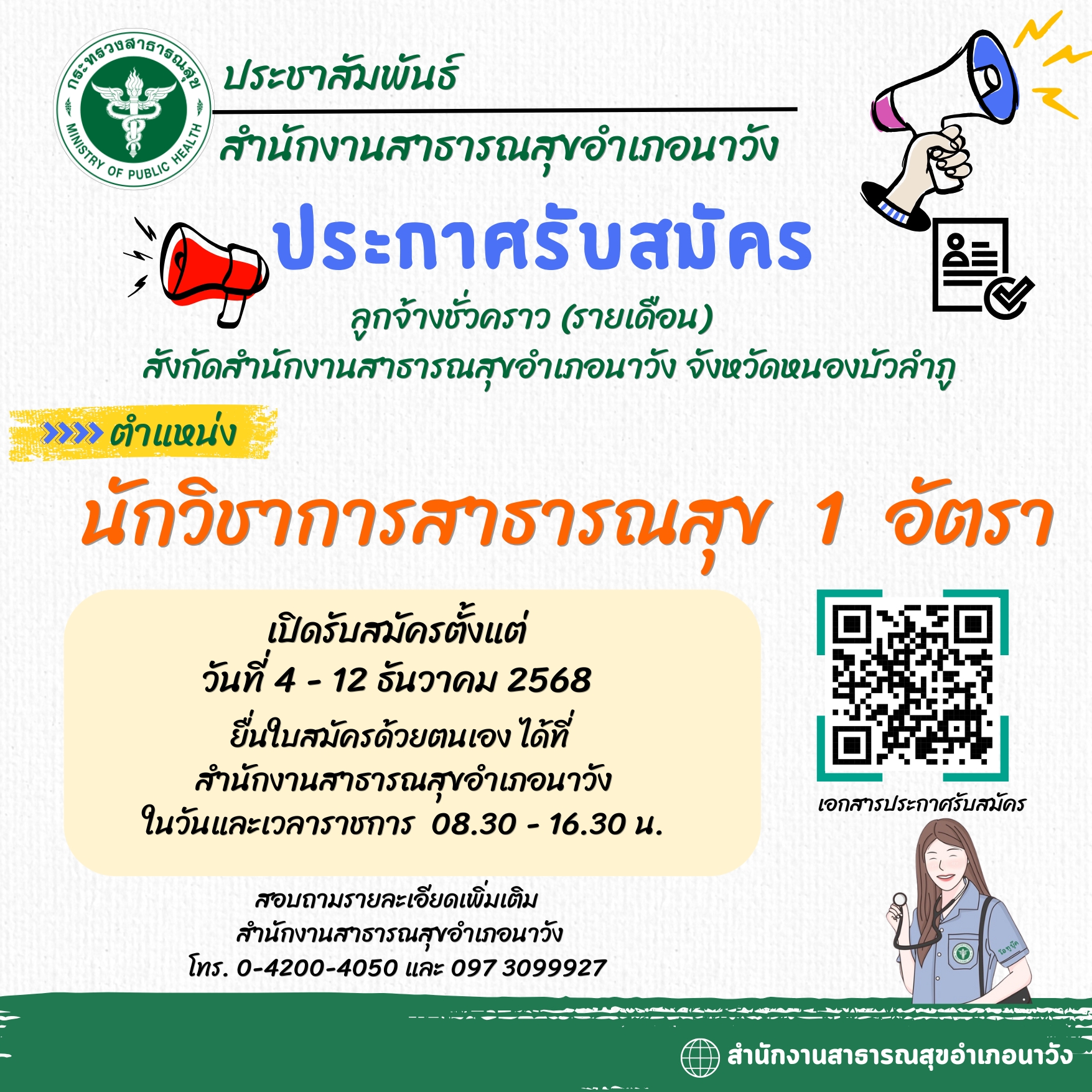 ตำแหน่ง นักวิชาการสาธารณสุข จำนวน 1 อัตรา